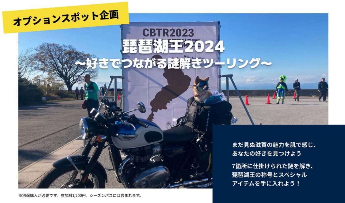 滋賀県の琵琶湖をバイクで1周しながらデジタルスタンプを集めるバイクツーリングイベントCBTR2024 (主催:CBTR2024実行委員会、運営:(株)ご当地ツーリング)の開催概要が決定しましたのでお知らせいたします。