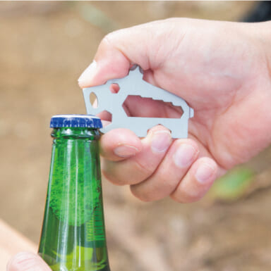 アニマル型のユニークなマルチツールは、栓抜きやレンチ、ドライバーなど、日常生活やアウトドアシーンで活躍する便利な機能が盛りだくさん。コンパクトサイズのため、キーホルダーやポーチに付けて携帯しやすいのも魅力です。デザインは、ディノ、シャーク、ベアー、ワイルドボアーの4種類をラインナップ。それぞれ異なる見た目が特徴ですが、機能性はどれも共通しており、お気に入りのデザインを選ぶ楽しみがあります。機能性と遊び心を兼ね備えたアイテムです。
