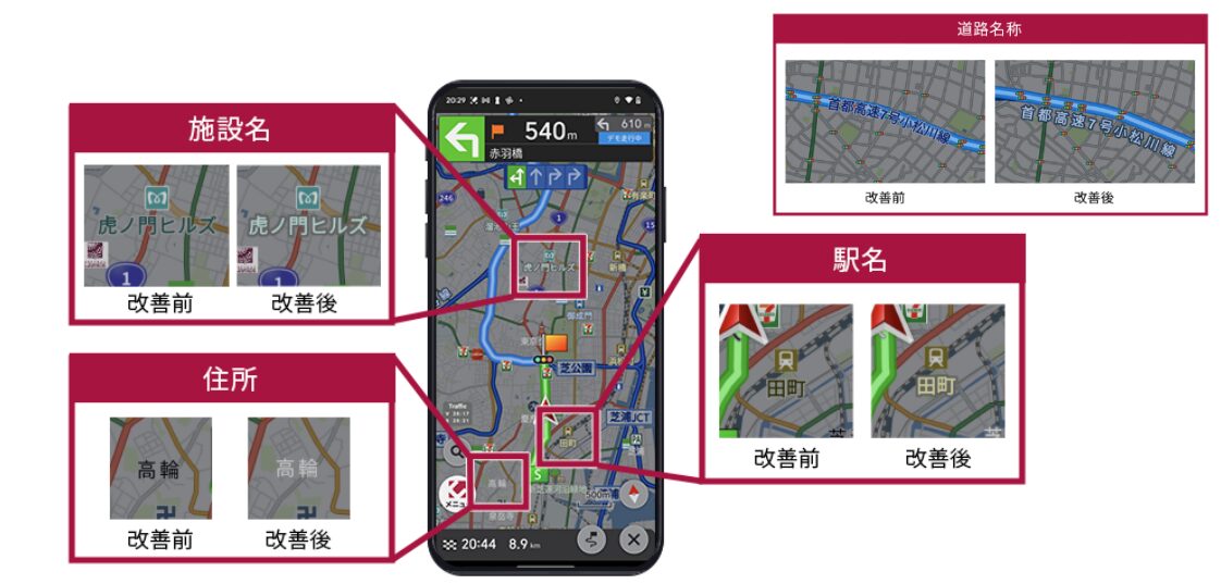 ~夜モードの視認性を向上し、走行軌跡の自動消去や目的地周辺の有料道/一般道選択が可能に~
