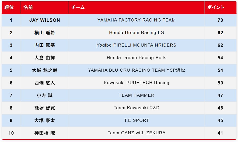 小柄ながら海外経験も豊富な横山選手は、新井宏彰氏をアドバイザーに迎え、Honda Dream Racing LGからIA1クラスに継続参戦している。開幕戦では2位に食い込み、チャンピオン候補として順調な滑り出しを見せた。外国人有力選手との厳しい戦いの中、今後の巻き返しとシリーズ制覇に期待がかかる。