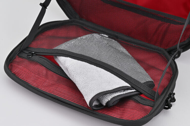 バッグ本体はパワーパネルとメタルフレームで型崩れしにくく、車体とあたる部分には傷つけにくい素材を採用。シートバッグ装着時でも荷物を取出しやすい横開きの蓋には、開き切らないストッパーや荷物がこぼれないネットが付いています。