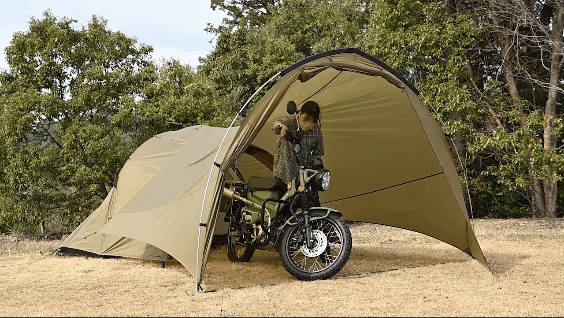 同製品は、従来モデルより大きく、ソロテントに広い前室空間を追加できるのが特長で、原付サイズのオートバイなら出し入れもよりスムーズできるようになった。また、軽量ながら高耐水圧素材や強度の高いアルミ合金ポールを採用し、ツーリングキャンパーに最適な設計となっている。Makuakeにて2025年4月25日から先行販売を実施し、6月下旬以降に一般販売を予定している。