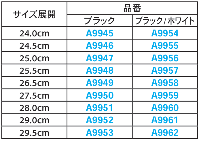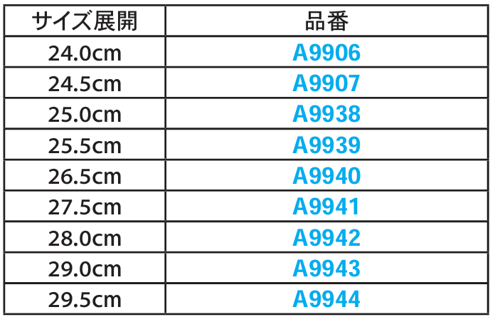 ※前モデルは表記サイズと比べてフィット感が強かったため、FLEX2.0はサイズ表示を見直しました。普段履きのサイズでお試しください。