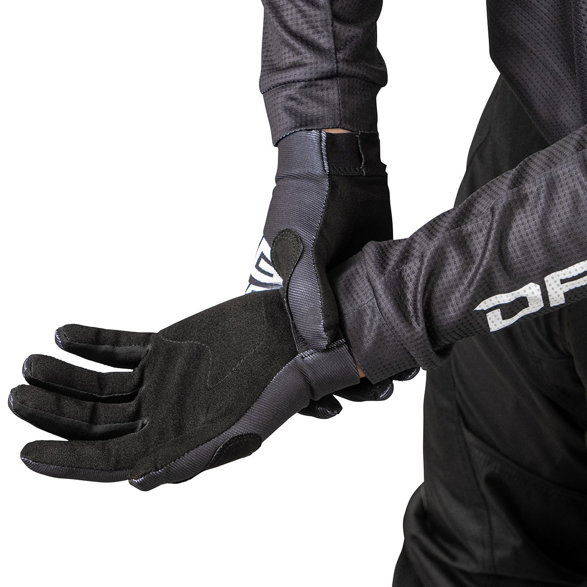伸縮性に優れ、抜群の操作性とフィット感を実現。 手の平には従来の合成皮革よりも柔らかく、通気性、耐摩耗性に優れた機能生地「AXスウェード」を採用。 操作性と耐久性を併せ持つモトクロスグローブ。