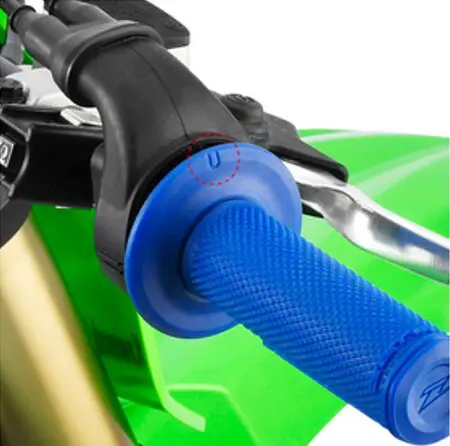一般的なハーフワッフルと比較してワッフルの幅が狭いため少ない力で握りやすく、腕が疲れにくい。また、ワッフルがエンドにかけて幅が広くデザインされており、小指から中指にかけて指がかかりやすい。泥や水などで滑りやすいコンディションでも、安定したスロットルワークを実現。
