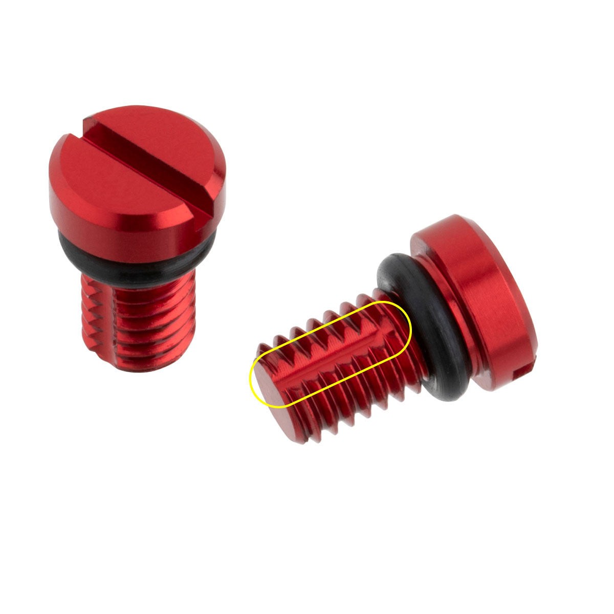 エアバルブスクリューには、空気の通り道を設けたことで、ネジを最後まで外すことなく空気を抜くことができる。