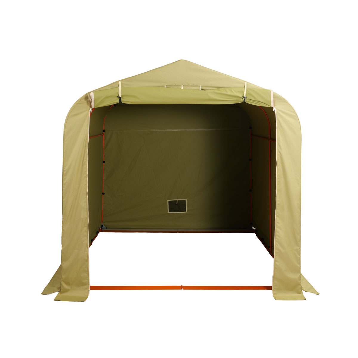 同製品は、付加機能を省いたシンプル設計でコストパフォーマンスを重視し、退色が目立ちにくいカーキカラーを採用している。また、重力換気を可能にする工夫も施され、雨天時でも通気性を確保。基地感を演出しながら、設置場所を選ばない実用性を兼ね備えた製品となっている。