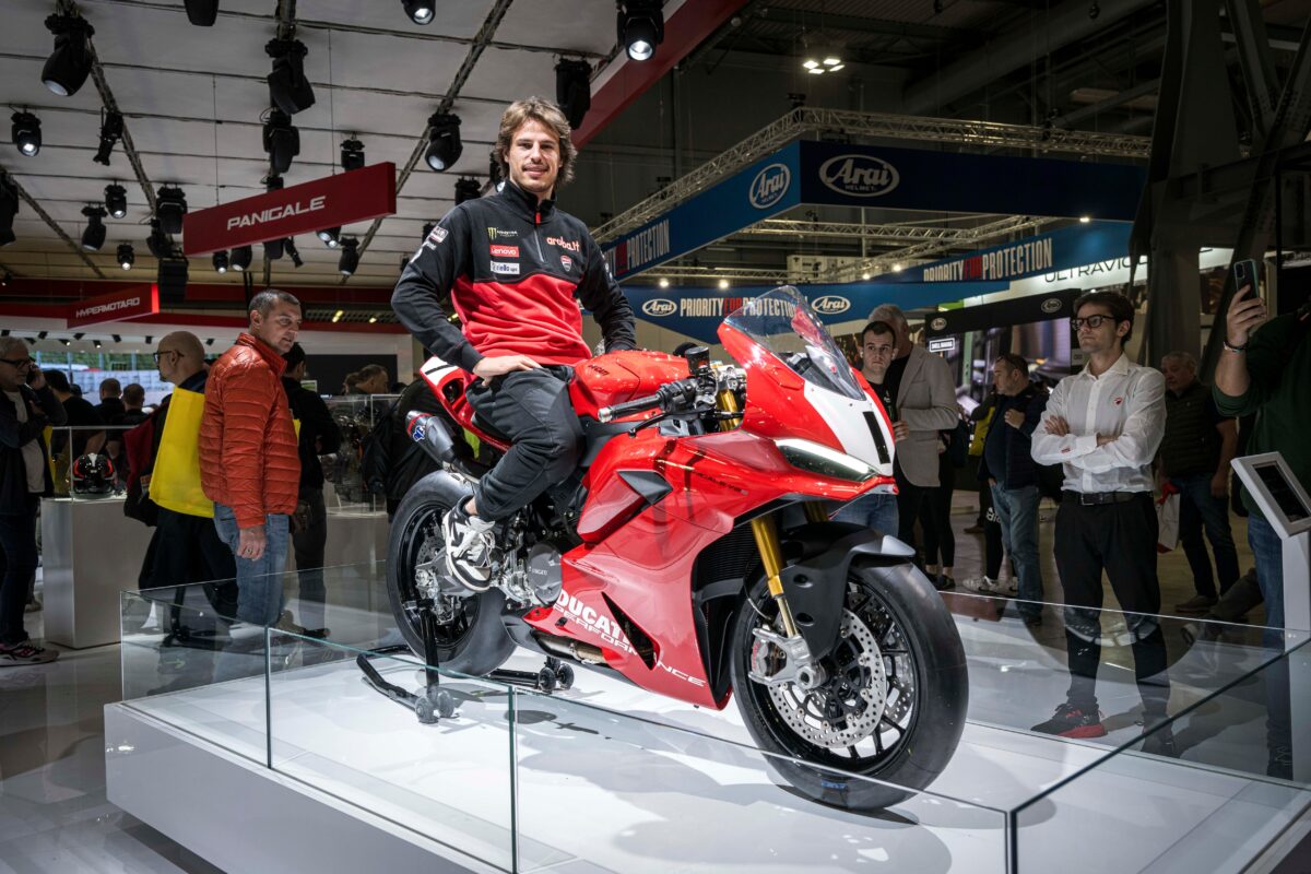 モーターサイクルの展示に加え、数多くのゲストやライダーがドゥカティ・ブースを訪れました。ドゥカティ・ブースのステージ上には、スーパーバイク世界選手権に参戦しているDucati Aruba.itチーム・オフィシャル・ライダーのニコロ ・ブレガとアルバロ・バウティスタ、スーパースポーツ世界選手権でタイトルを獲得したエイドリアン・ウエルタス、イタリアMX1モトクロス選手権チャンピオンのアレッサンドロ・ルピーノ、9回のモトクロス世界タイトルに輝いているトニー・カイローリ、MotoGPプルタミナ・エンデューロVR46チームのマルコ・ベッツェッキ、イタリア・スーパーモタード選手権のライダーで、ハイパーモタード698モノのローンチ・ビデオの主役の一人であるケビン・ヴァンディが登場し、イベントを盛り上げました。また、デスモセディチGPのオフィシャル・テストライダーであり、イタリアのスーパーバイク選手権でチャンピオンを10回獲得したミケーレ・ピッロも登場し、パニガーレV4に乗るドゥカティのアマチュア・ライダーのためのワンメイク・レース、V4エリートカップの開催を発表しました。