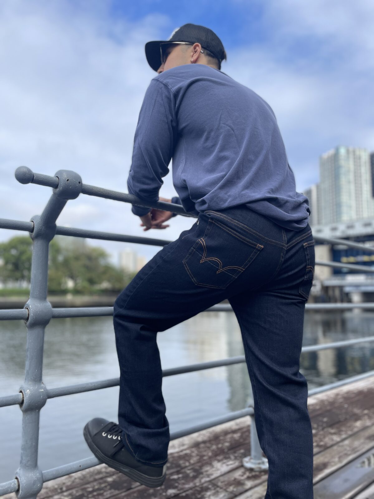 パンデミックを通じて、モノづくりやメンテナンスの現場で活躍する人々の重要性が改めて浮き彫りになりました。社会のインフラを支え続けた彼らに敬意を表し、最高のパフォーマンスを発揮するための「ツール」として、このジーンズは誕生しました。「原点回帰ジーンズ」は、エドウインが誇る高品質なデニムとファクトリーギアの職人視点から生まれたアイデアを融合。日本のワークシーンの未来を形作る一本として、日常にも馴染むファッション性を備えています。