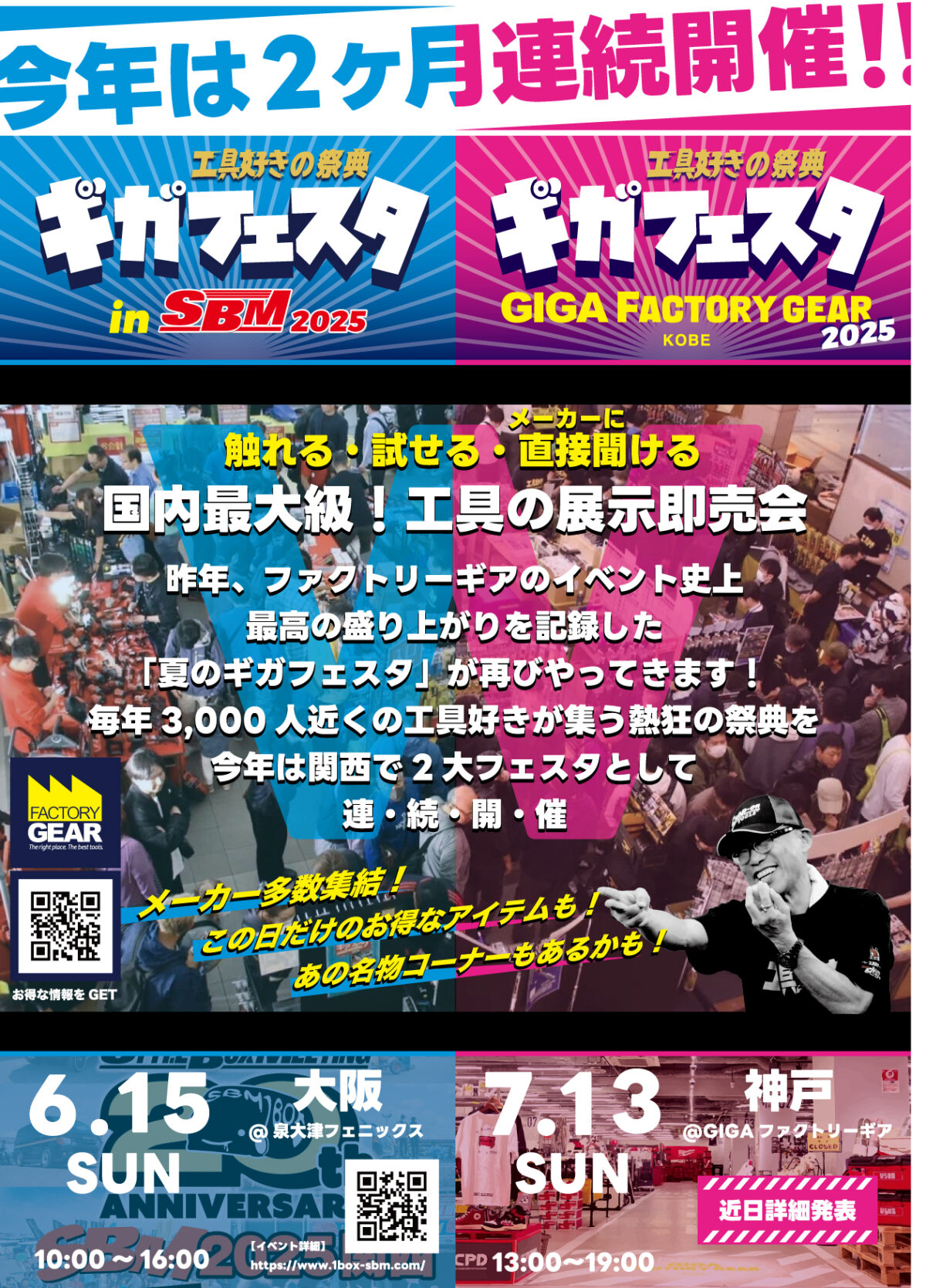 熱狂、再び関西へ!ファクトリーギアが贈る”工具の祭典”『Wギガフェスタ』2025年夏、大阪&神戸で連続開催決定!