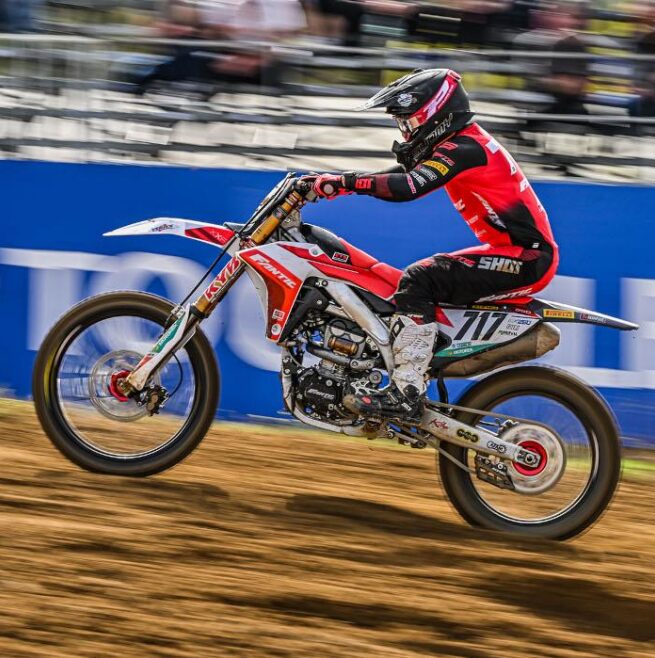 体調は必ずしも絶好調とは言えなかったこの週末、グレン=コルデンホフはそれでも計時予選で6位、それを受けた予選レースでは5位にファンティック XXF450 を運び込んだ。日曜日のレース1、コルデンホフのスタートは例によってベストとはいいがたいものだったが、確実なペースでレースをコントロールし、トップ10に食い込んだのちもペースアップを続け、最終的には6位に入賞することができた。レース2、スタートは似たような状態だった。コルデンホフはトップ5を目指して追撃を開始したが、残すところ3周で転倒、クラッチレバーを折損してしまった。それでもゴールへ向け再スタートを目指したものの、マシンに本人以外の手が触れたため不適切なアシスタントを受けたと認定され、レースは完走扱いにならず、総合14位に後退する結果となってしまったのだ。