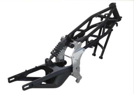 メインフレーム:クロモリ鋼管製トリレスフレーム+アルミ削り出しサイドプレート