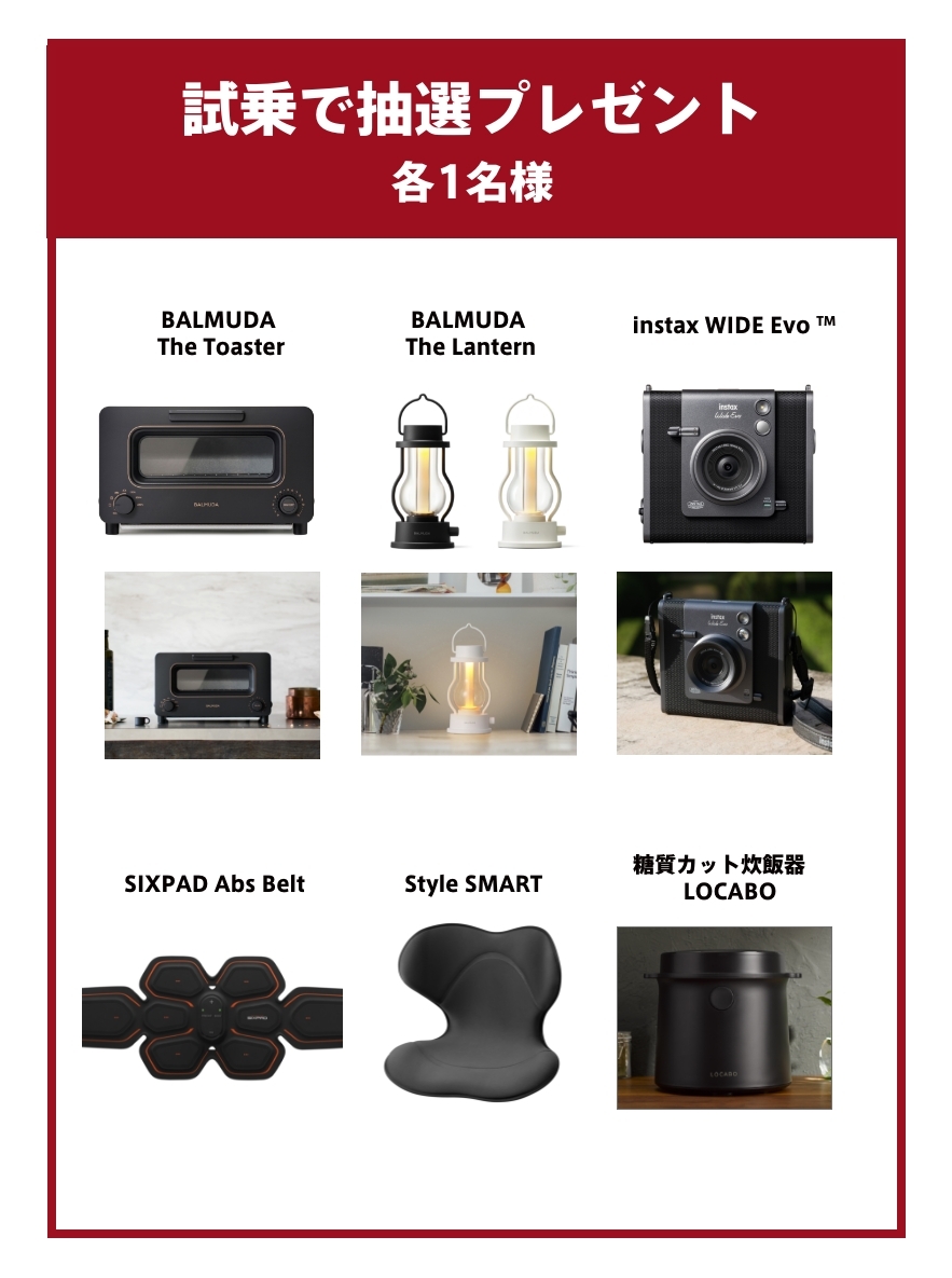 更に、ご試乗いただいた方の中から、抽選でプレゼント(各賞品1名様)