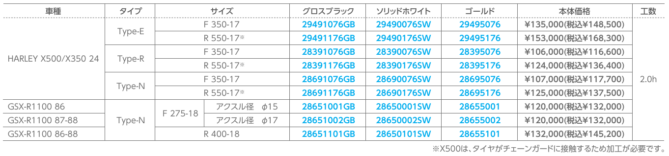 X350/500は、ノスタルジックな雰囲気にストリートでの軽さと乗り心地を体感できるType-Nと、強度としなやかさが特徴のロングセラーモデルType-R、ストリートで求められる性能をバランスよくまとめたType-Eの3タイプが用意されている。また、GSX-R1100には、F275/R400のスリムサイズが新登場した。愛車のカスタマイズをして、より快適な走りを楽しんでみてはいかがだろうか。