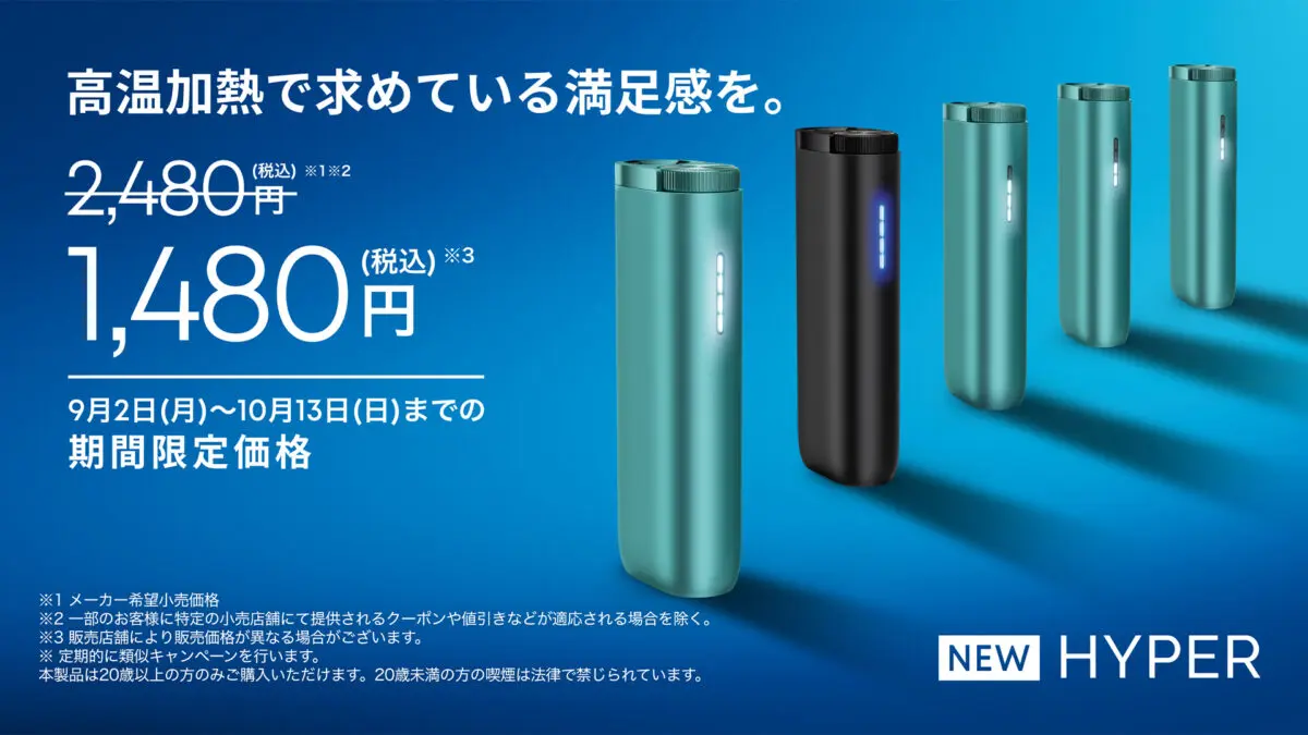 BATジャパン(正式名称:ブリティッシュ・アメリカン・タバコ・ジャパン合同会社、本社:東京都港区、社長:エマ・ディーン)は2024年9月2日(月)から10月13日(日)までの期間、加熱式たばこデバイスglo™(グロー)のスタンダードモデル「glo™ HYPER(グロー・ハイパー)」の全3カラーを、メーカー希望小売価格2,480円(税込)から期間限定の特別価格1,480円(税込)(※1)(※2)(※3)で販売するキャンペーンを全国で実施いたします。紙巻たばこから加熱式たばこへの切り替えの機会として、「glo™ HYPER」をよりお求めやすい価格でお試しいただけます。