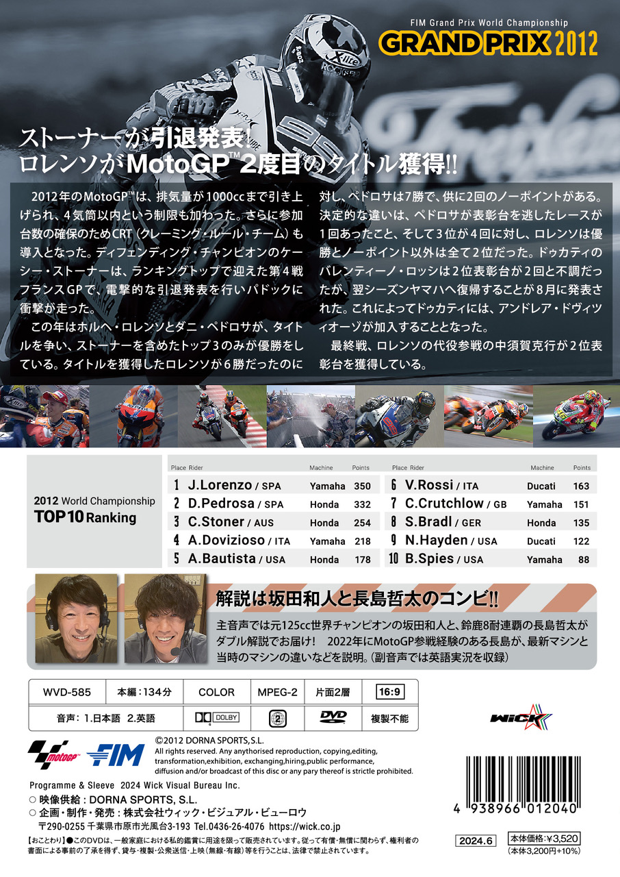 株式会社ウィック・ビジュアル・ビューロウは、新譜DVD「GRAND PRIX 2012 総集編」を2024年6月24日(月)に発売した。