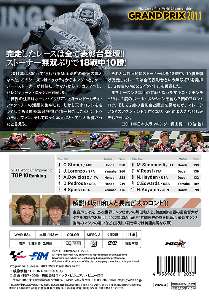 ストーナーが無双ぶりを発揮 「GRAND PRIX 2011 総集編」新発売