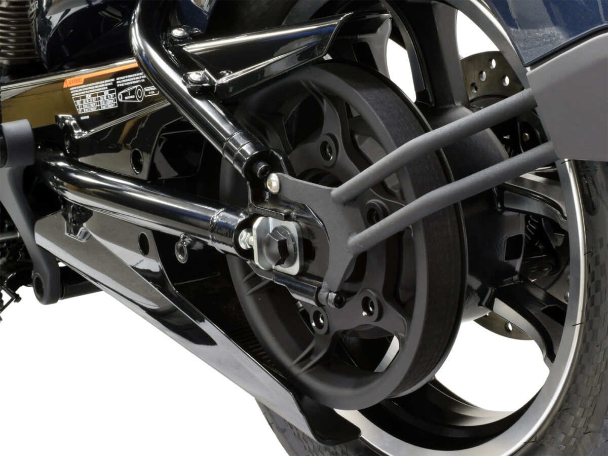 都会的クルーザーに相応しい走行ノイズの少ない静粛性、注油メンテナンスフリー、そしてロングライフに優れたベルトドライブを使用しています。