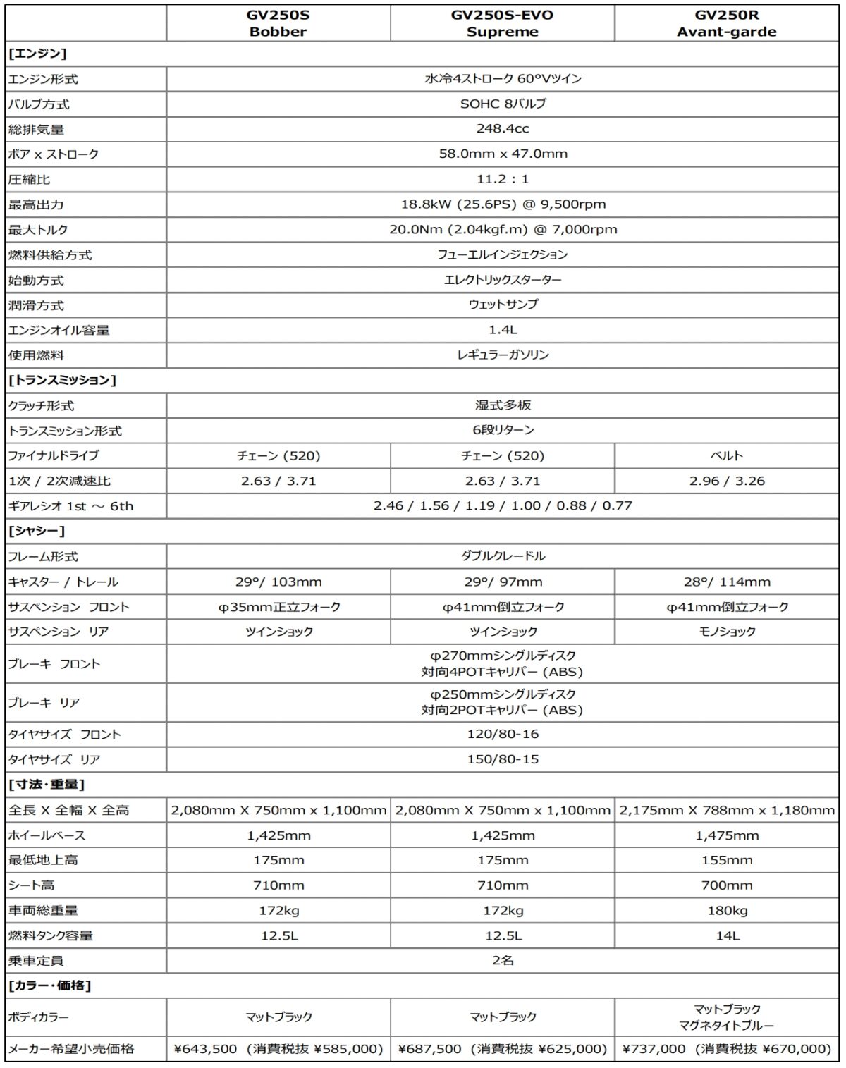 (GV250S, S-EVO, R 共通エンジン)