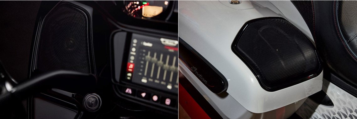 プレミアムオーディオは、究極のバガーとツーリング体験の重要な要素であり、インディアン チャレンジャーエリートとインディアン パシュート エリートは、「PowerBand Audio」で実現します。インディアン チャレンジャー エリートにはバス・ブーストと4つの100Wスピーカー、インディアン パースート エリートには6つの100Wスピーカーが搭載され、クリアなサウンドを提供します。9バンドのダイナミック・イコライザーは、ロードノイズ、風切り音、エンジンノイズを自動的に調整し、ビートを逃すことなく臨場感あふれるリスニング体験を約束。スピーカーは洗練された彫りの深いデザインで、パワフルなオーディオを引き立てるモダンな外観となっています。「RIDE COMMAND」メニューにシームレスに統合されたシステムは、直感的で簡単なユーザー体験を保証します。