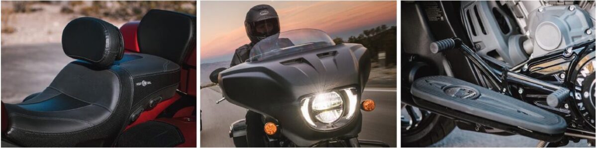 オーディオ機能の強化や進化したPathfinderアダプティブLEDヘッドライトなどのオプションは、ライディング体験を豊かにし、高い機能性とスタイルを提供します。インディアン・モーターサイクル・パワーバンド・オーディオは、ロードノイズ、ウインドノイズ、スロットルノイズをカットするよう巧みに設計され、ライダーに臨場感あふれるオーディオ体験を与えます。パスファインダーのアダプティブLEDヘッドライトは、特許取得済みの最先端技術を採用しており、バイクのリーンアングルをリアルタイムでモニターし、前方を最適に照らします。