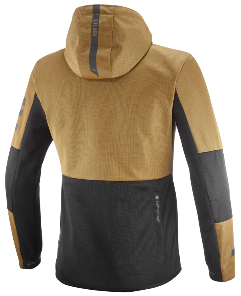 肩と肘には CE 認可プロテクターを装備。背中と胸部にはプロテクター用ポケット装備(別売プロテクターに変更可能)。