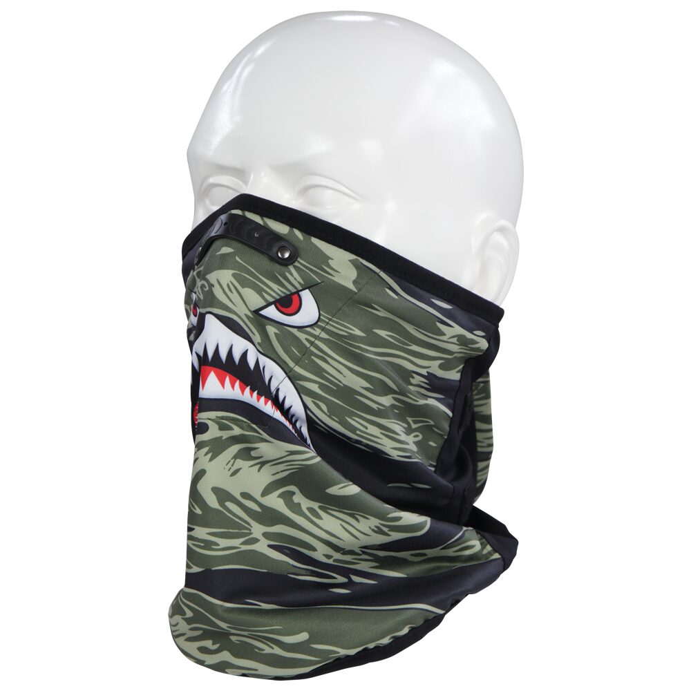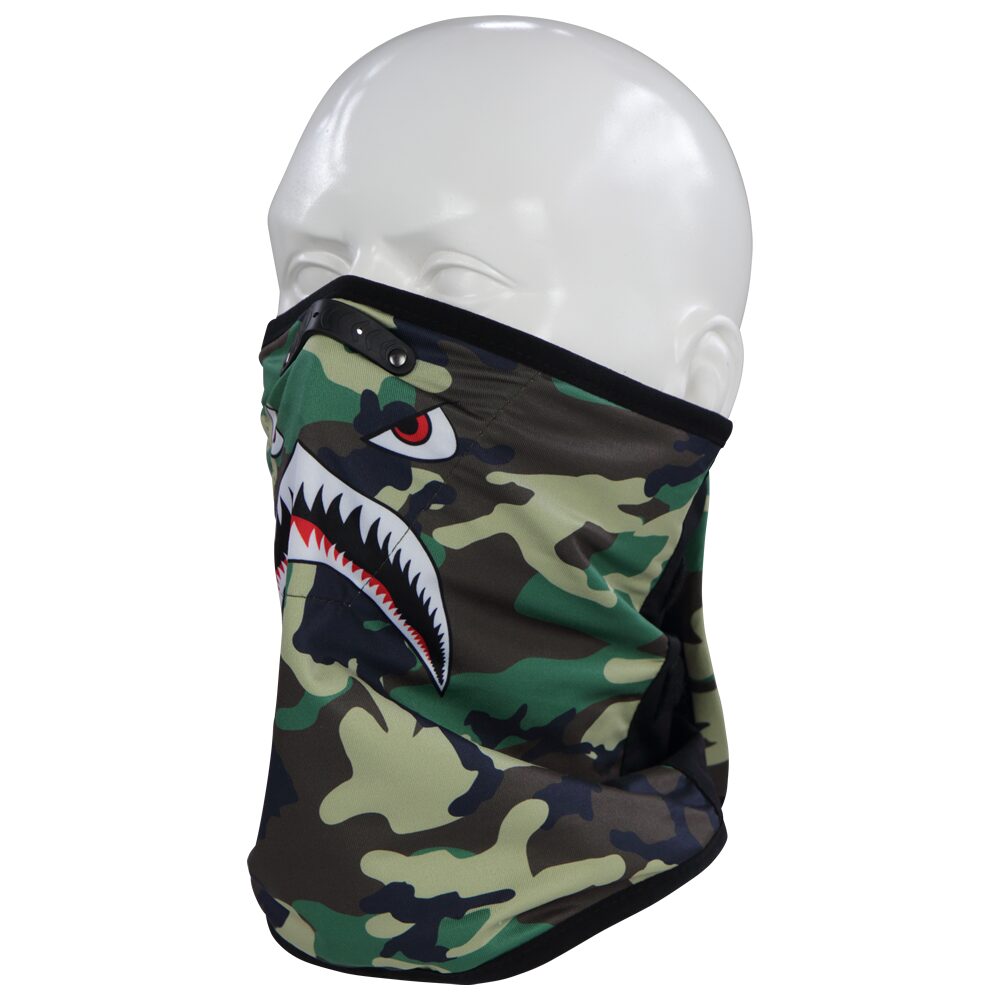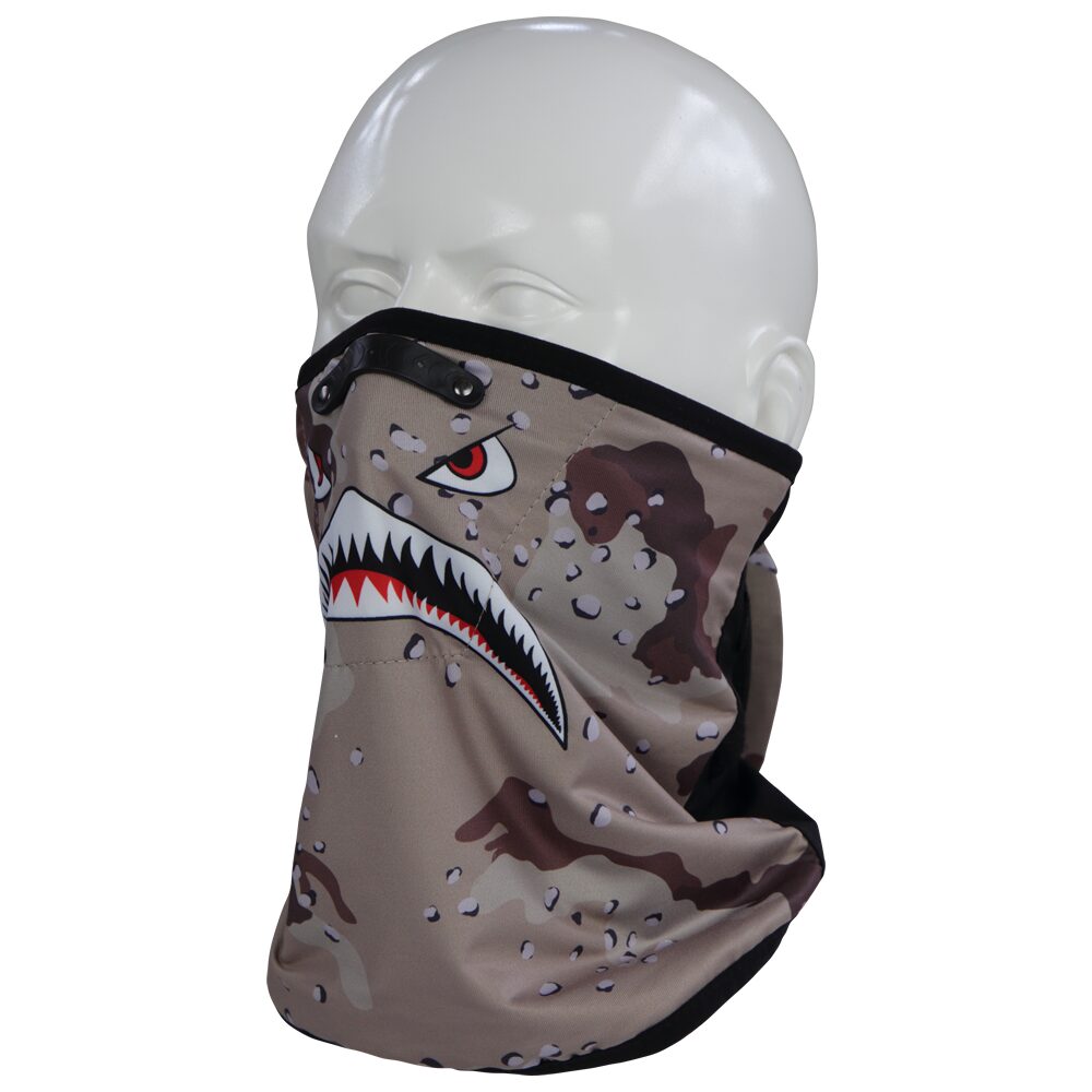 こちらは巻き付け型のフェイスマスク ノーズトップのカシメと大型ベルクロの調整でシールドの曇りも最小限に!3種のカモ柄からチョイスください