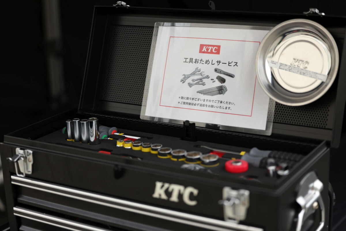 KTC 京都機械工具株式会社とタッグを組み、Ninja Team Green Cup参加者を対象とした工具おためしサービスを会場で実施しています。