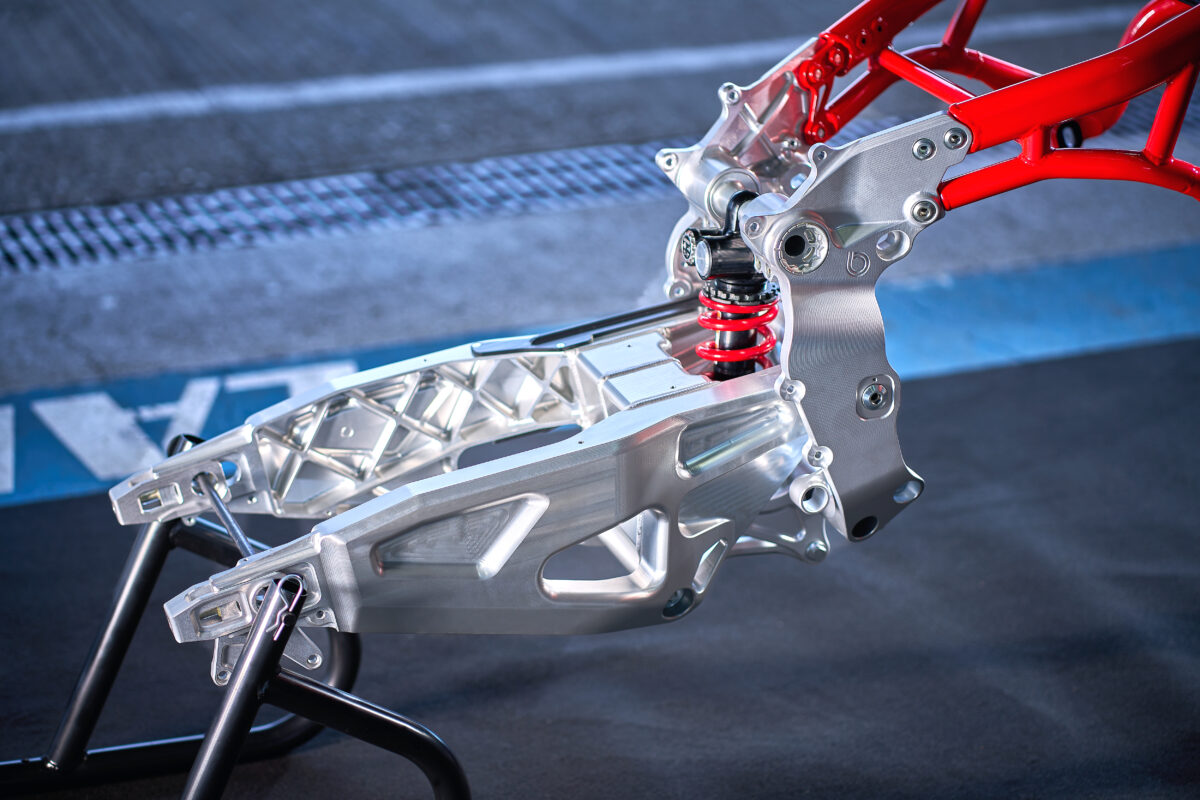 シャーシデザインは、bimotaの長年のシャーシ設計哲学に基づき、クロムモリブデン製のメインフレームとビレットアルミニウム合金プレートの2つの異なるフレーム材料を融合させています。