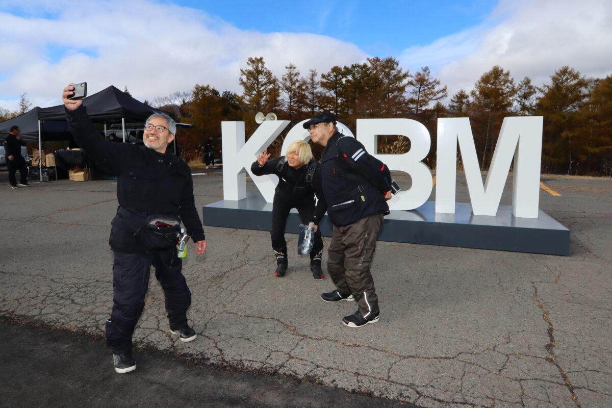 カワサキコーヒーブレイクミーティングの象徴の1つとなっているKCBMロゴの等身大モニュメント