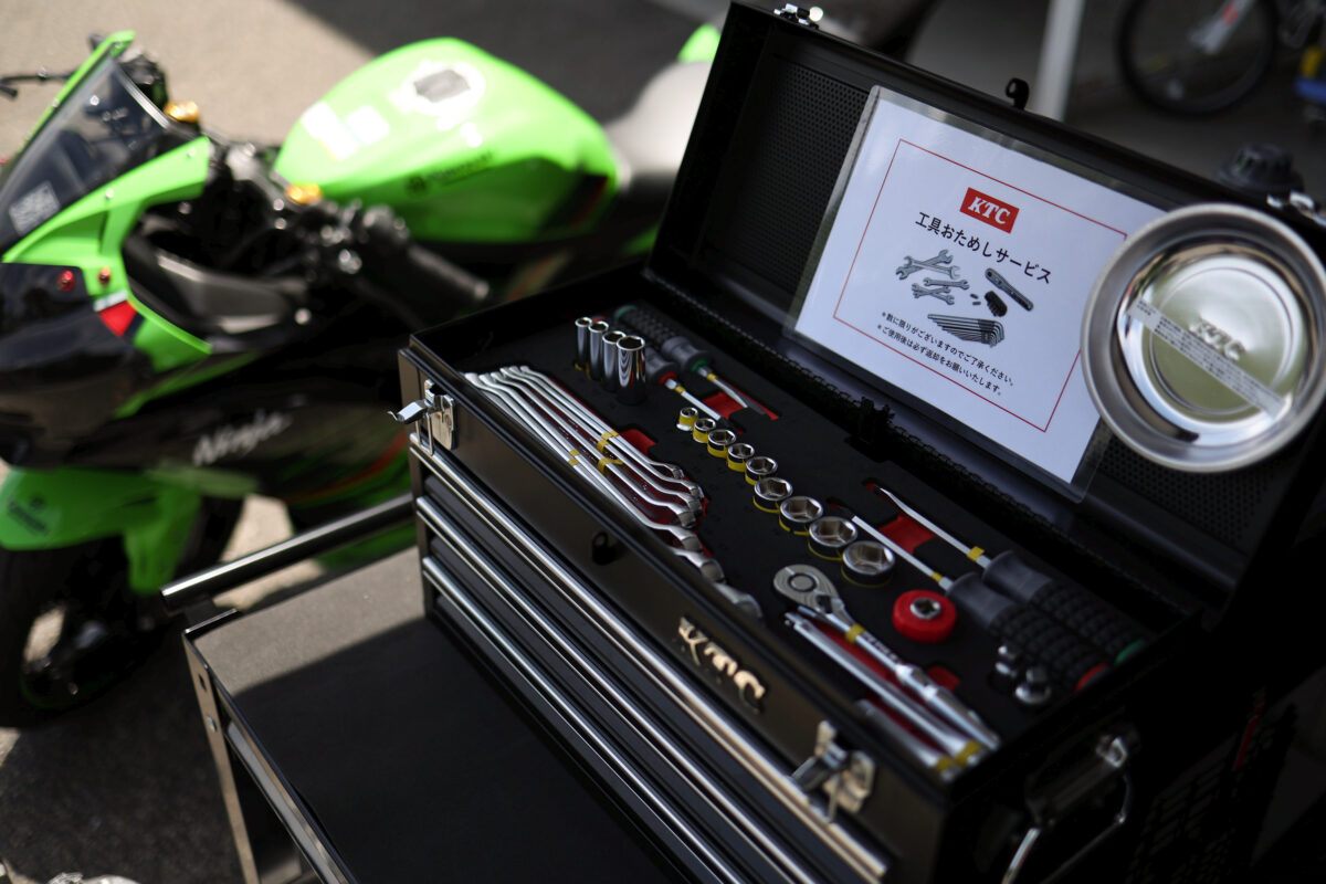 KTC 京都機械工具株式会社とタッグを組み、Ninja Team Green Cup参加者を対象とした工具おためしサービスを会場で実施しています。