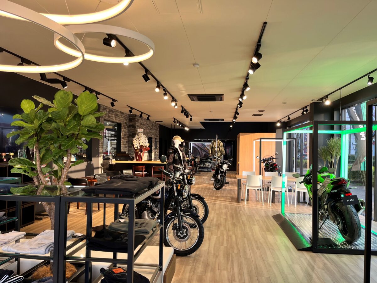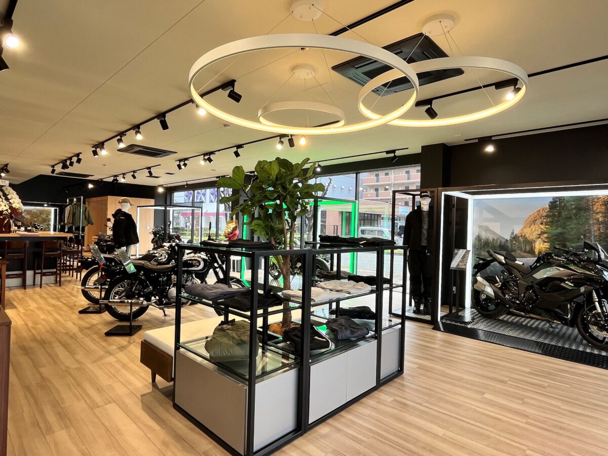 福岡市の東、新宮町の「カワサキ プラザ福岡東」が店内をリフレッシュしてオープン!ウッディなフロアが優しいぬくもりを伝えます。経験豊かなスタッフが皆様のモーターサイクルライフをサポートいたします。
