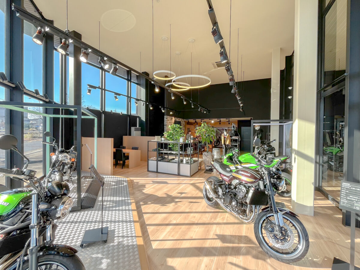 富山県​射水市の「カワサキ プラザ富山」が店内をリニューアル!ウッディなフロアが優しいぬくもりを伝えます。ひとりひとりに合ったモーターサイクルライフをご提供いたします。