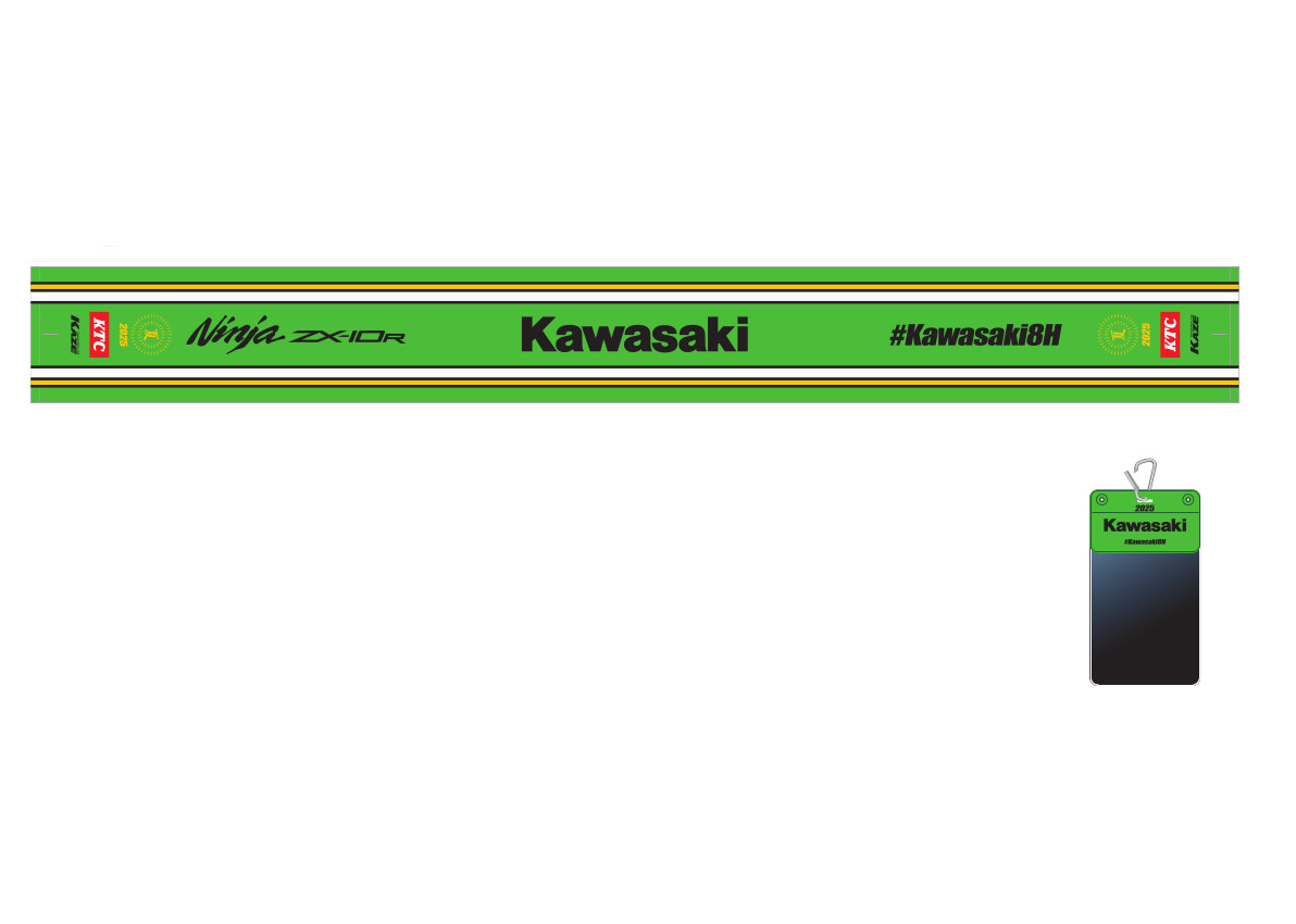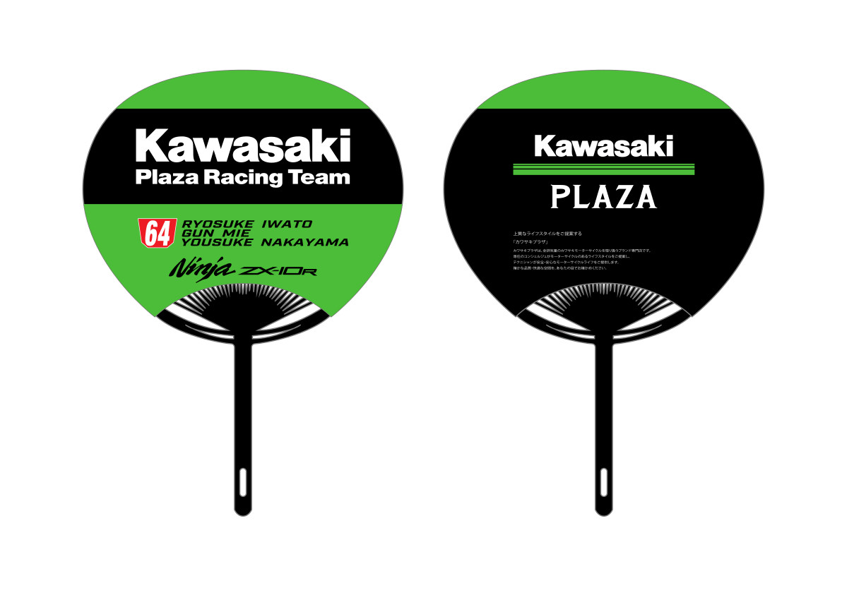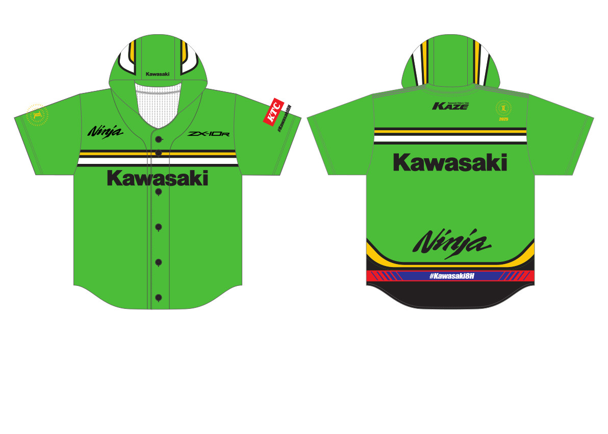 「カワサキ応援席」購入特典の応援グッズには、カワサキを象徴とするライムグリーンのベースボールシャツやフラッグなど、グランドスタンドを鮮やかに彩るアイテムをご用意いたしました。カワサキの応援グッズを身に着けて「Team Kawasaki Webike Trickstar」「Kawasaki Plaza Racing Team」を始めとするカワサキのチームを応援しよう!