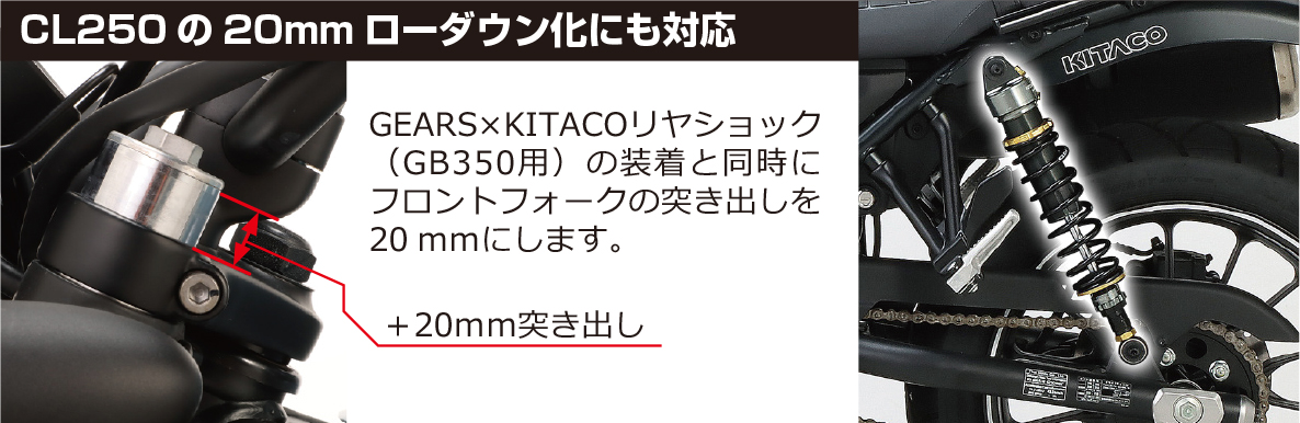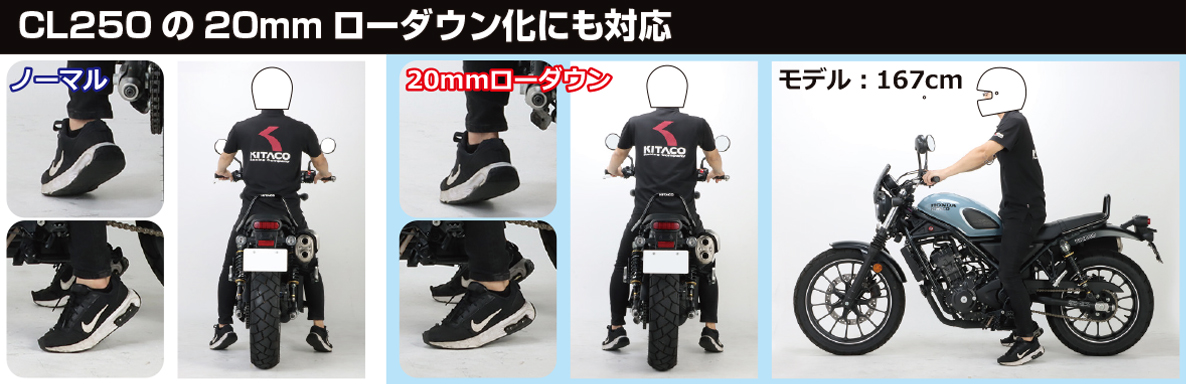 株式会社キタコは、CL250の20mmローダウン用「ショートサイドスタンド」を発売した。