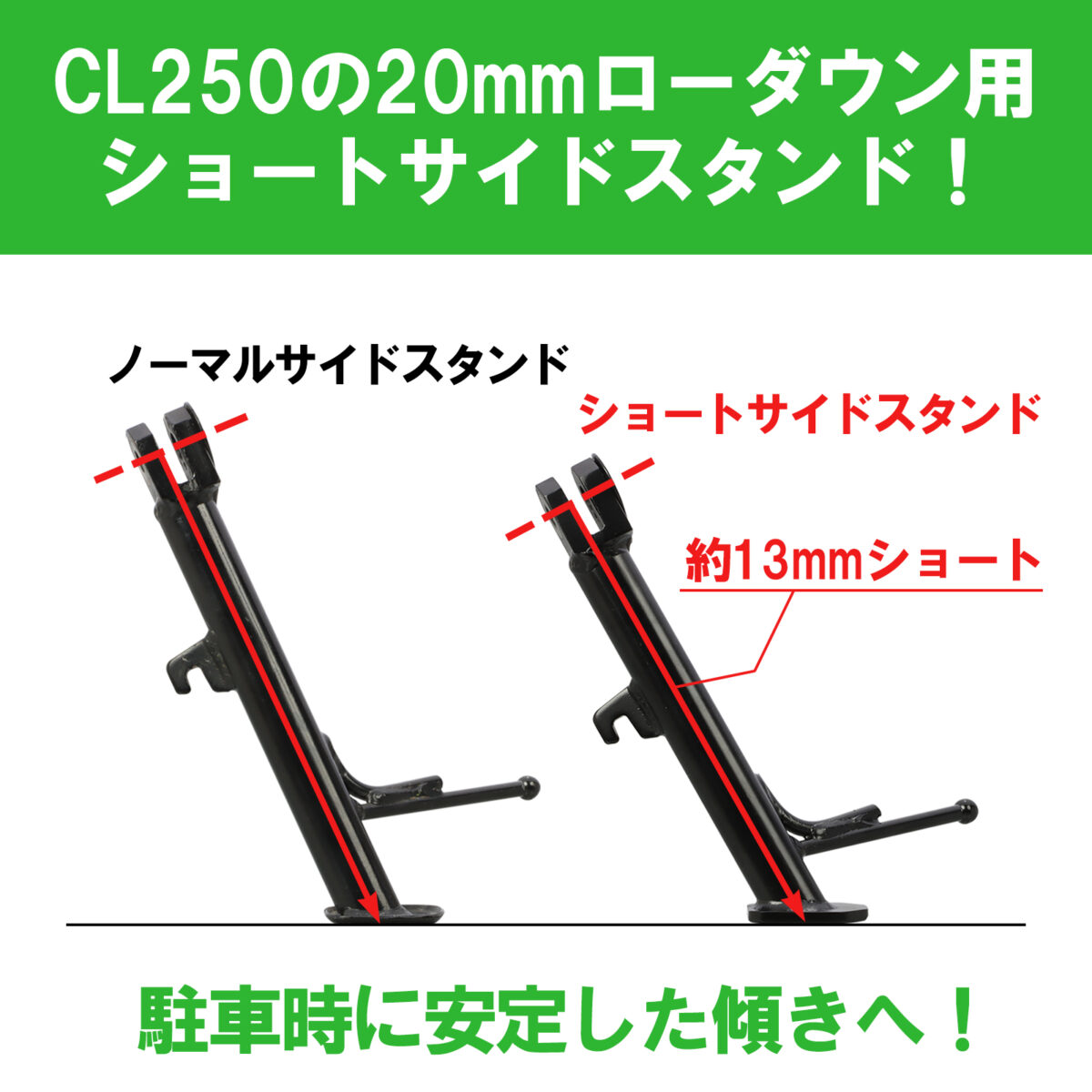 CL250の20mmローダウン用 ショートサイドスタンド リリース!!駐車時に安定した傾きへ駐車時に安定した傾きへ!