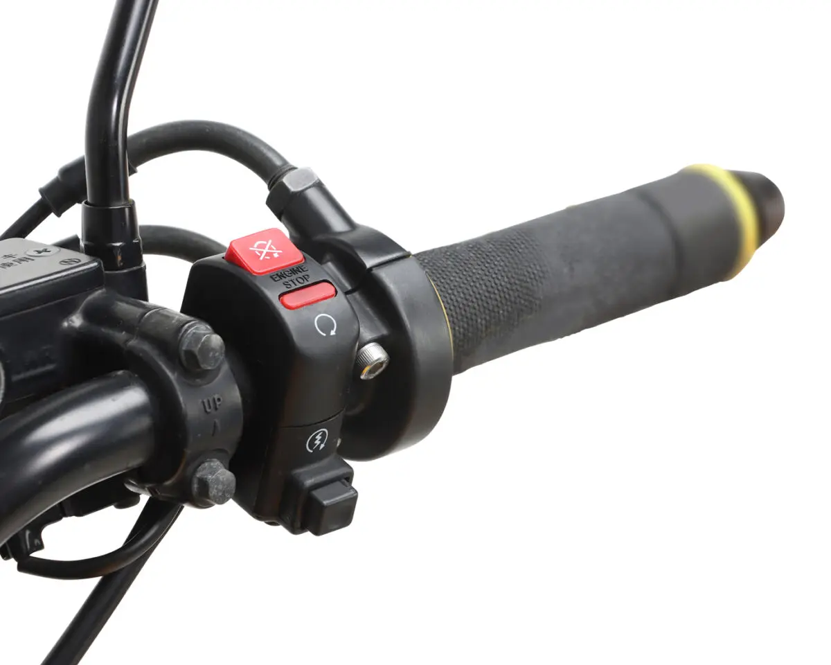 ノーマルの一体型スイッチとスロットルハウジングを別体化。ハンドル交換時のスロットルケーブルの取り回し自由度が向上します。車種専用キル&セルスイッチはカプラーオンで装着可能。ハイスロットル化(約10%)も実現。