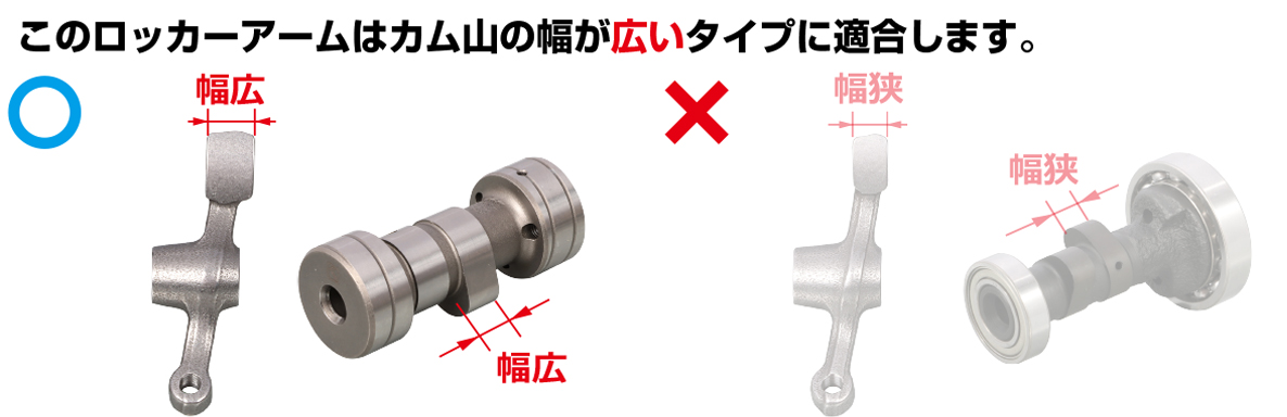 モンキー、ゴリラ6V車のノーマルシリンダーヘッドや当社製STDタイプ2シリンダーヘッドに使用可能なカム山が広いカムシャフトに対応するロッカーアームです。