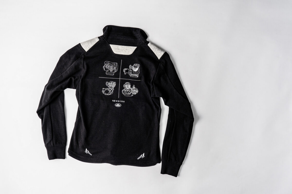 世界的に知られるカスタムビルダー中嶋志朗さん(46works)とさまざまなプロジェクトでクロスオーバーを実施していますが、2025SSも新しいウェアを5モデル展開いたします。今シーズンは、中嶋さんに愛用いただいているレーシングスーツからインスパイアした、雰囲気のあるブルーを採用したレザージャケットやテキスタイルジャケットも登場です。