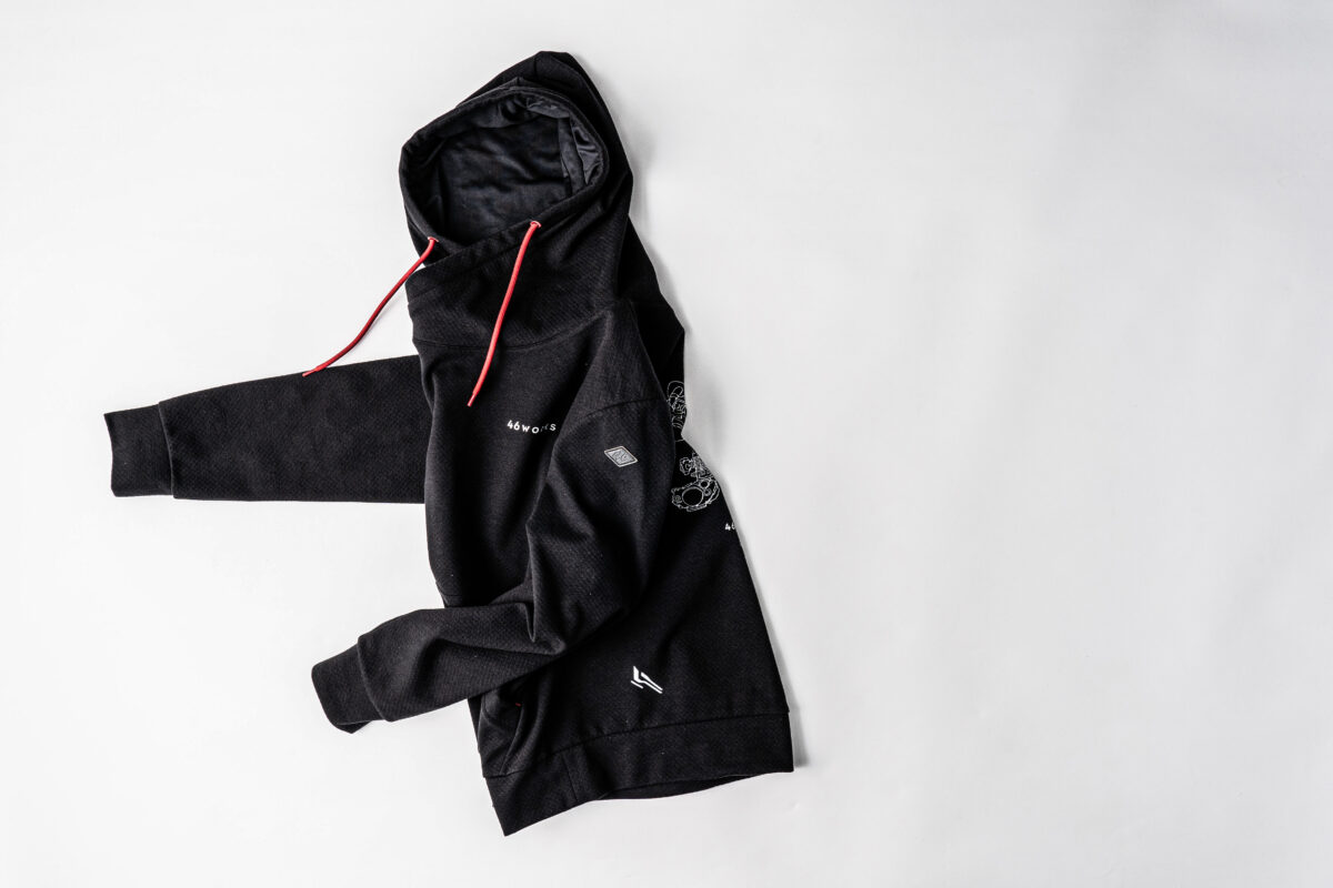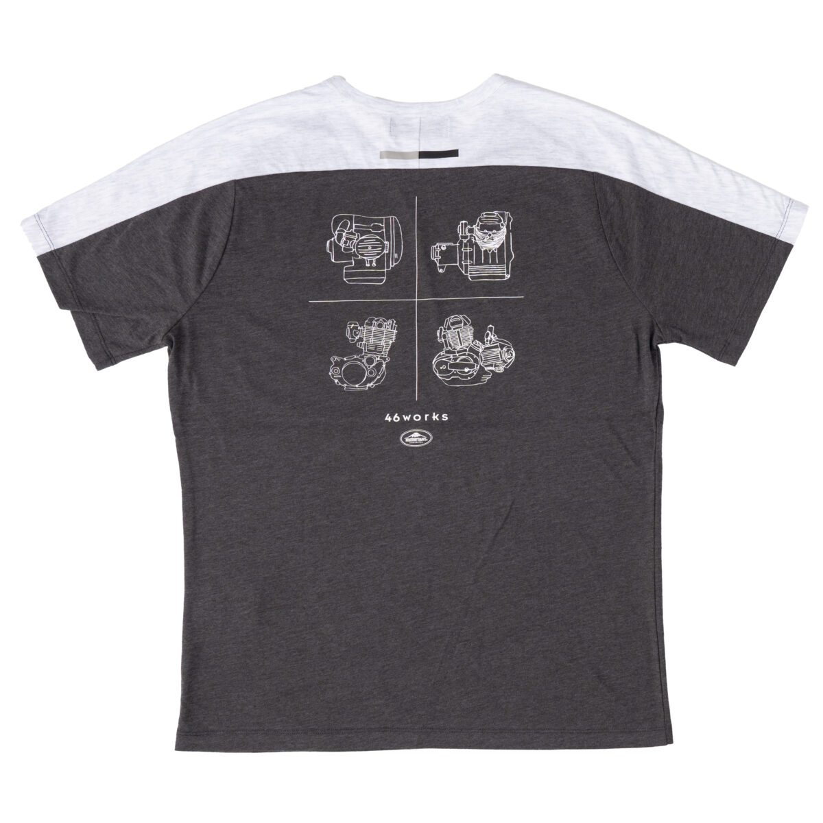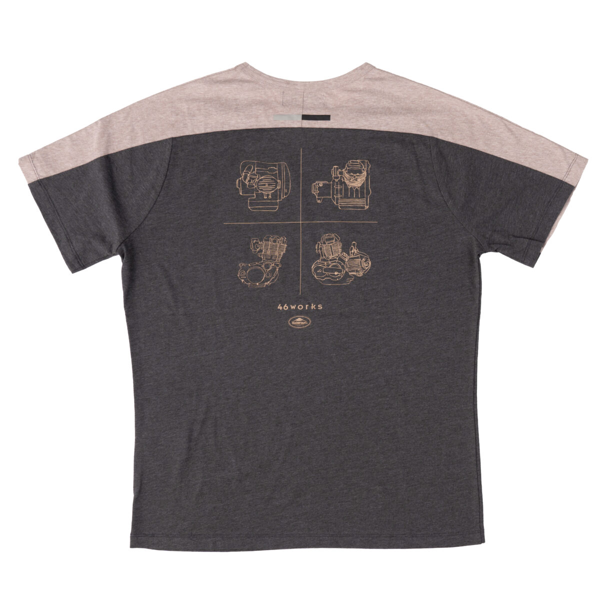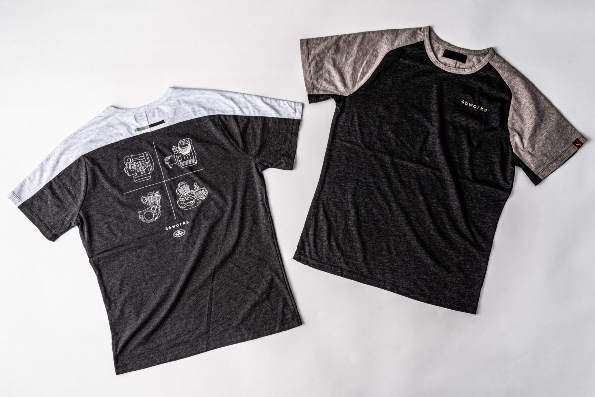 吸汗速乾の杢調のTシャツをベースに、46works中嶋代表のスケッチロゴを配置したシンプルなアイテムです。