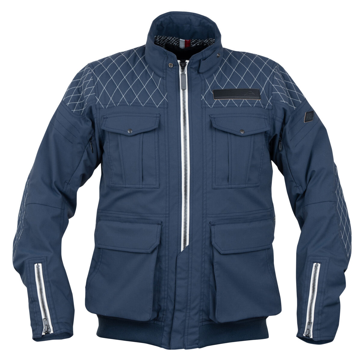 オーセンティックラインのアーカナシリーズの46worksコラボデザインジャケットです。ダイヤ柄リップと杢調を品良く併せ、ストレッチ機能を持たせた防水透湿生地を独自新開発採用し、特徴的なダイア柄パテットデザインを配置しています。サイズ拡大調整と大型エアインテイクを兼用したフロントダブルファスナー仕様を採用。ネイビーは新色です。生地性能(耐水圧10,000㎜透湿10,000g/㎡/24h) ただし完全防水ではありません。TPUラミネーション