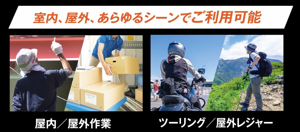 ワンプッシュで屋内屋外あらゆる環境で体感温度を下げることが可能です。