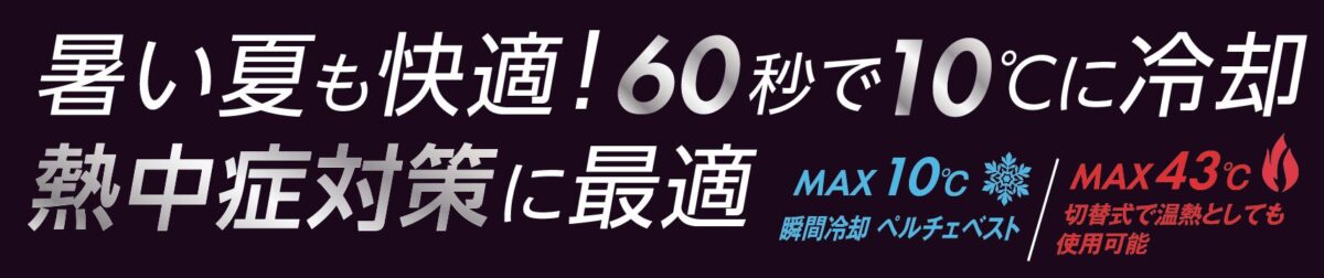 60 秒で 10℃に到達し背中の脊髄動脈を冷やし、身体の内側から体感温度を下げます。