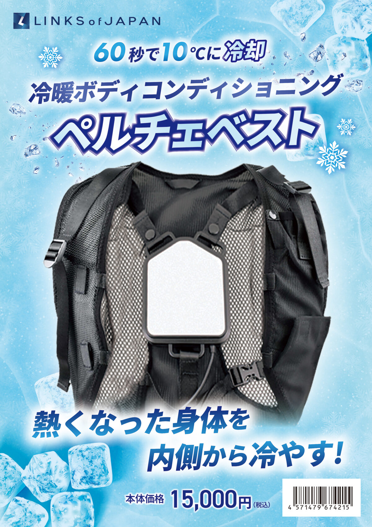 株式会社LINKSは、2024年4月19日 に「冷暖 ボディコンディショニング ペルチェベスト」を発売した。