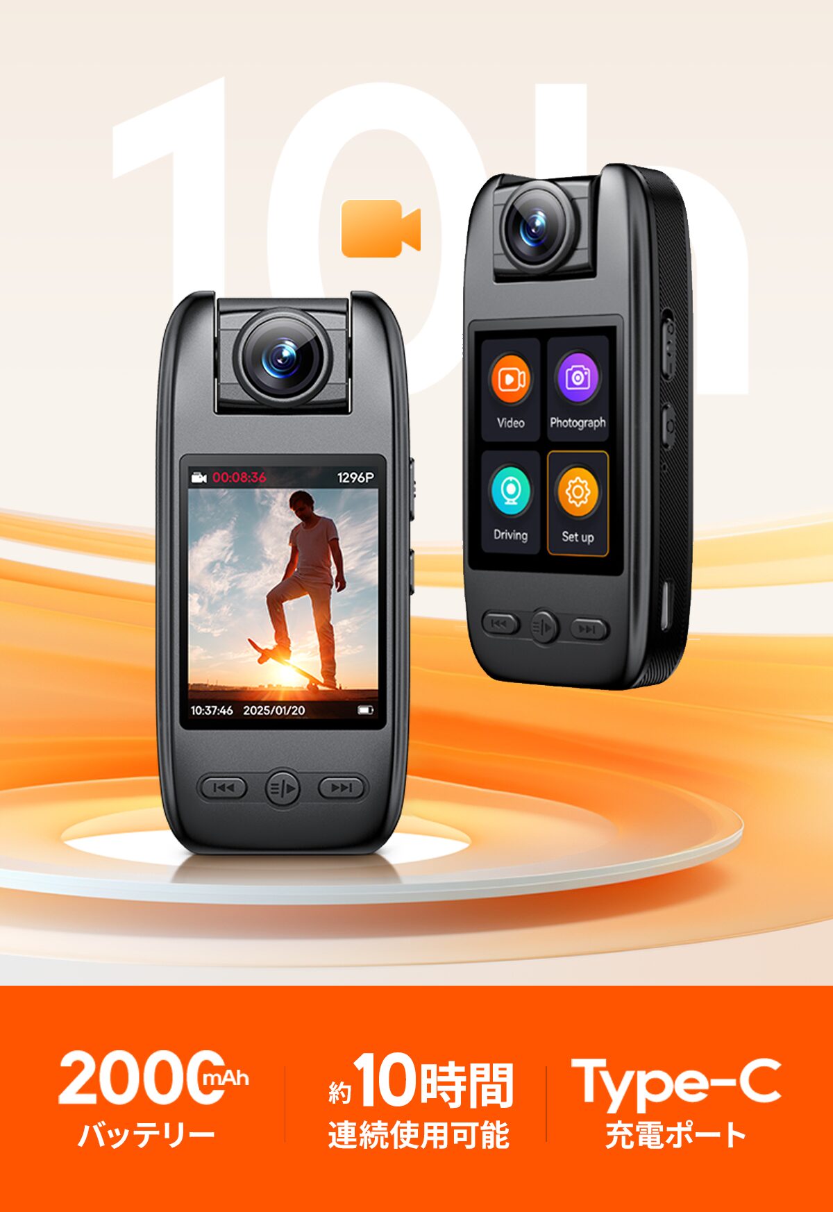 本製品は最大10時間の連続撮影が可能です。イベント、旅行、スポーツ観戦など、長時間の撮影を必要とするシーンでもバッテリー切れの心配はありません。