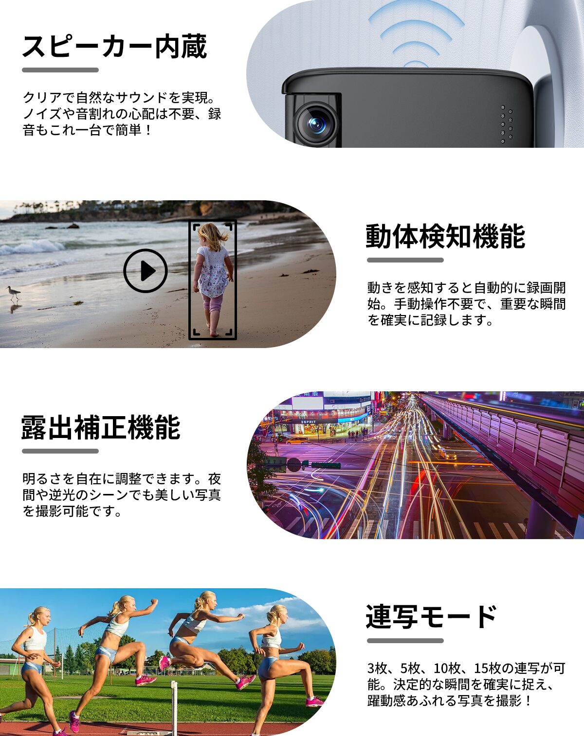 本製品は、電子式手ブレ補正を搭載しており、激しい動きや振動の中でも安定した映像を撮影することが可能です。サイクリングやランニングといったアクティブなシーンでも、手ブレを気にせず、鮮明でスムーズな映像を記録できます。