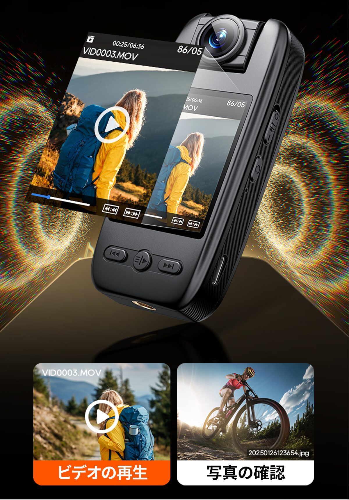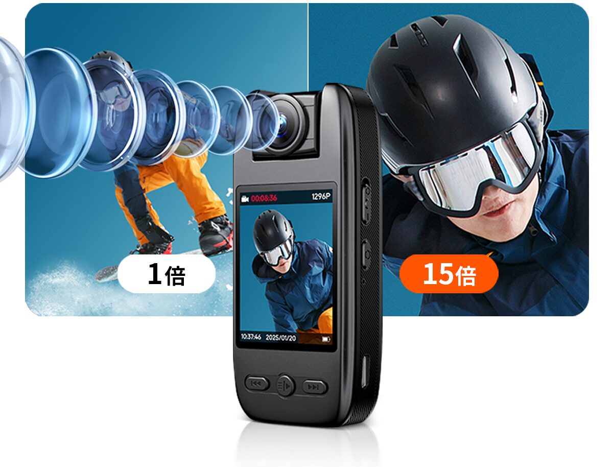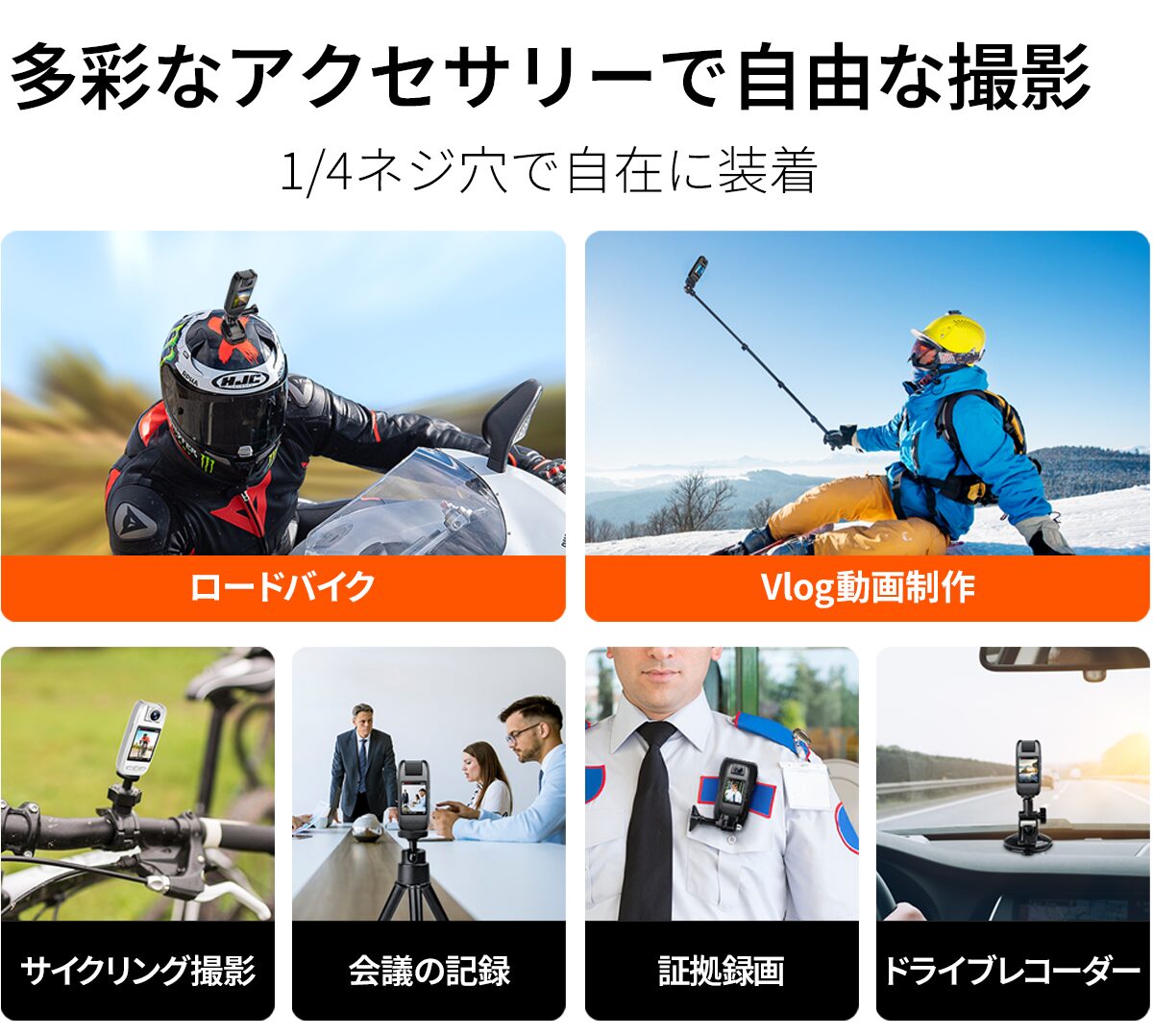 従来の固定型カメラでは難しかった、複雑なアングルや動きのあるシーンでも、ストレスなく撮影が可能です。例えば、胸元やヘルメットに装着すれば、自分の目線映像や周囲の景色を正確に記録できます。また、家族や友人と一緒の場面では、レンズを反転させてセルフィーモードに切り替えるだけで、楽しい瞬間を簡単に自撮り撮影できます。