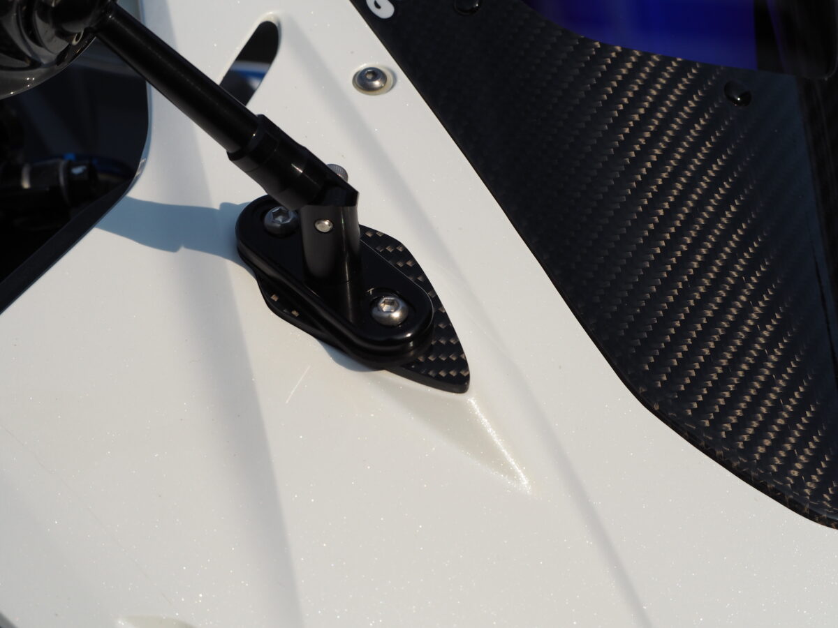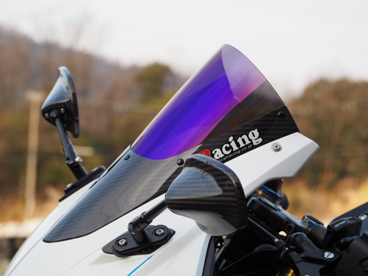 3種類のマウントピッチの異なるフィッティング・プレートを採用し、27ミリから64ミリまでの取付ピッチのレーサーレプリカ車などカウリングにマウントするほとんどの車種に取り付けることが可能です。