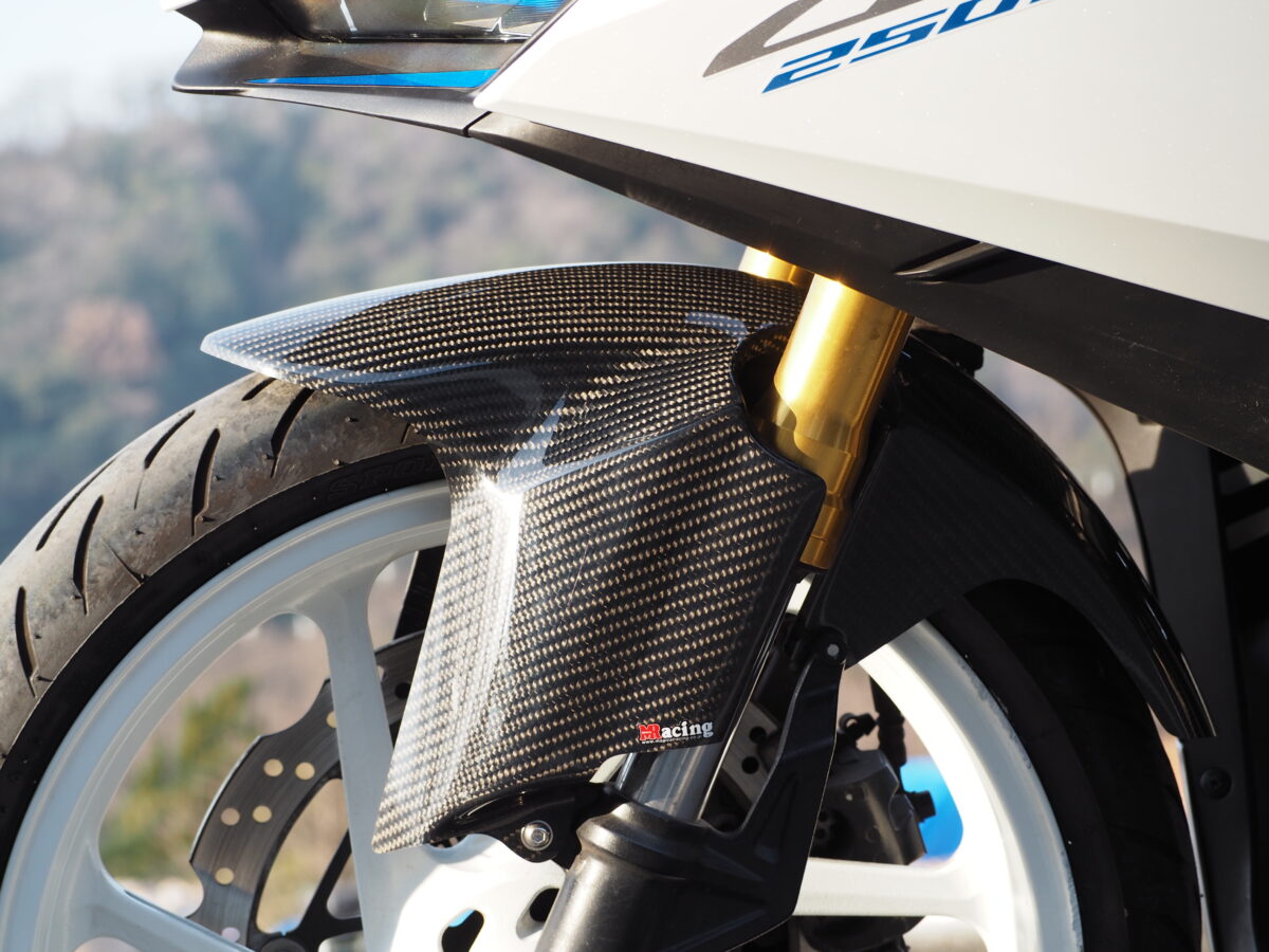 同シリーズでは、高いエアロプロテクション効果を発揮する「カーボントリムスクリーン」や、フォークガードを一体形状にすることにより、飛び石などからフロントフォークのインナーチューブを守ってくれる「フロントフェンダー」、中空モノコック構造により、コーナーリング時のグリップを高めて下半身ホールドを容易にするうえ、ブレーキ時のフォームも安定する「タンクエンド」など、多数のパーツを展開している。CBR250RRのカスタマイズを検討している方は、詳細をチェックしてみてはいかがだろうか。
