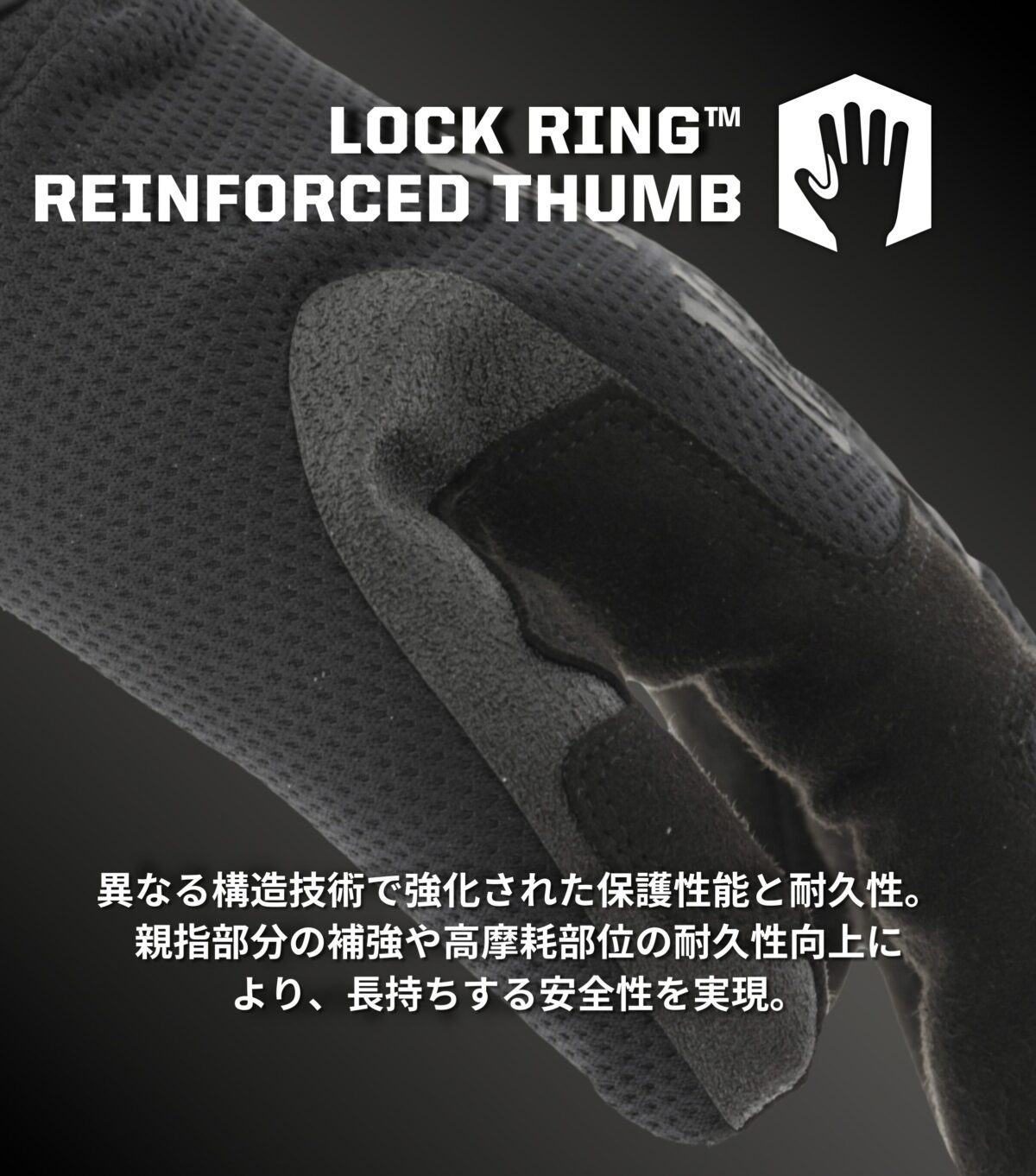 - Lock Ring™プリントの親指サドルデザインが耐摩耗性を強化。